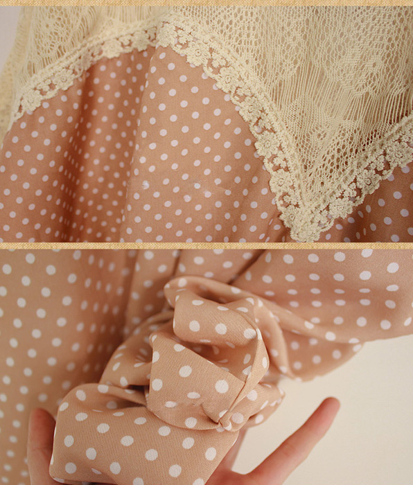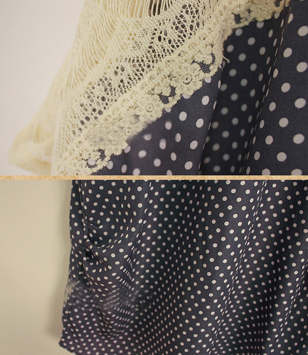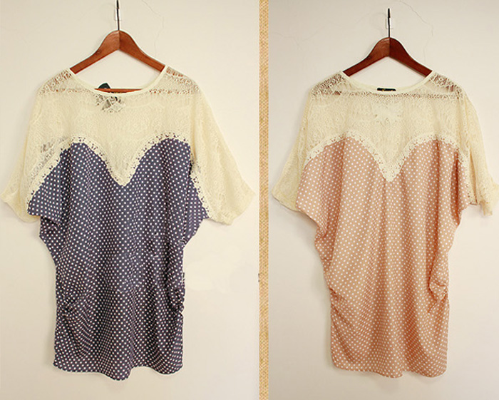 Amanda49 Stylish Bat Sleeves Lace and Polka Dot Short Sleeve Blouse