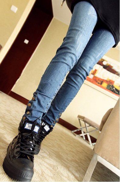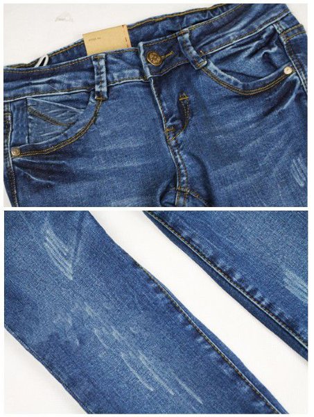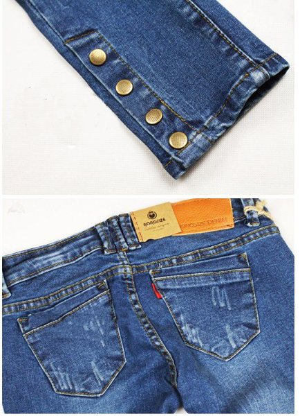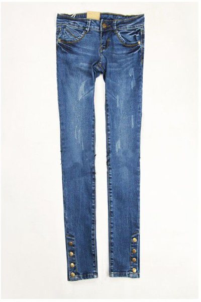 Amanda49 Stylish Button Embellished Classic Blue Pencil Jeans |