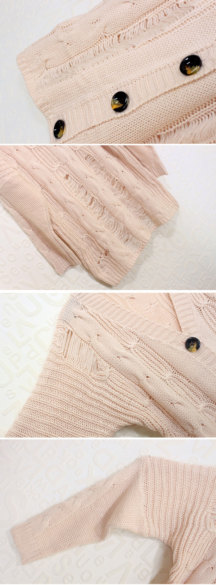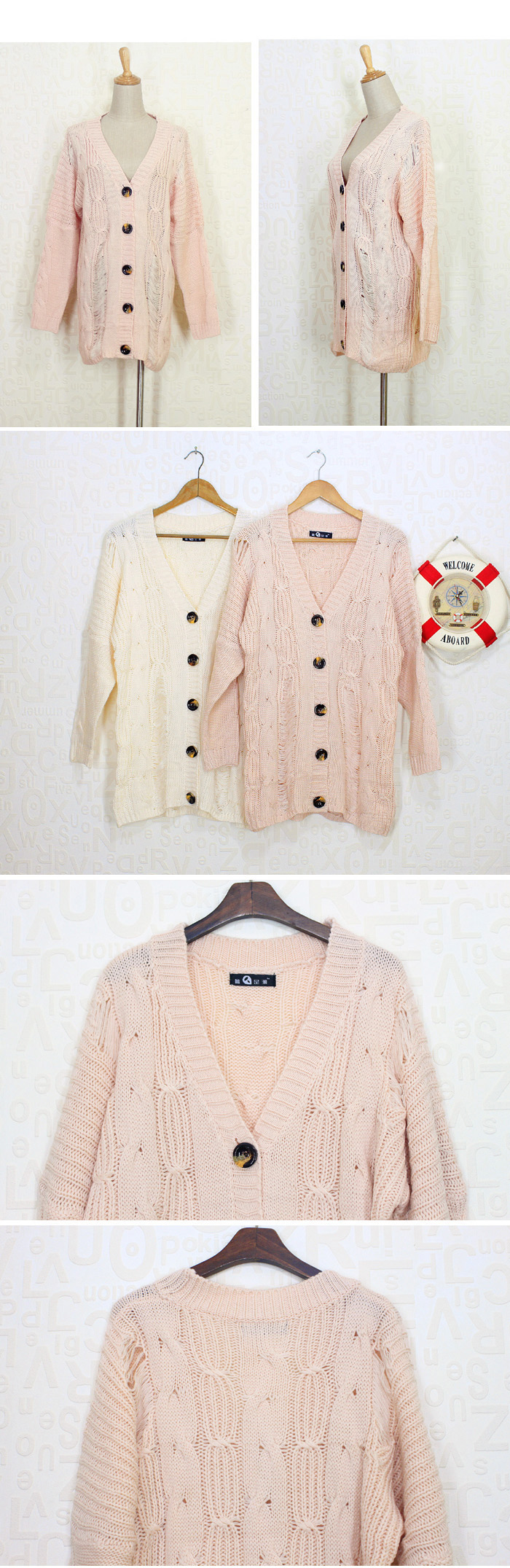 Amanda49 Stylish Deep V-Neck Single-Breasted Flax Patterns Broken Hole Design Long Sleeves Acrylic Coat For Women |