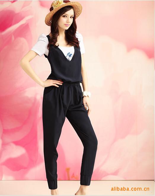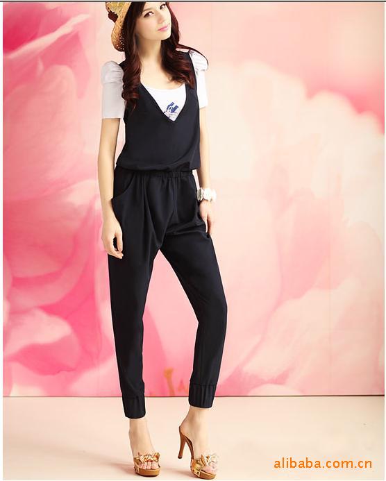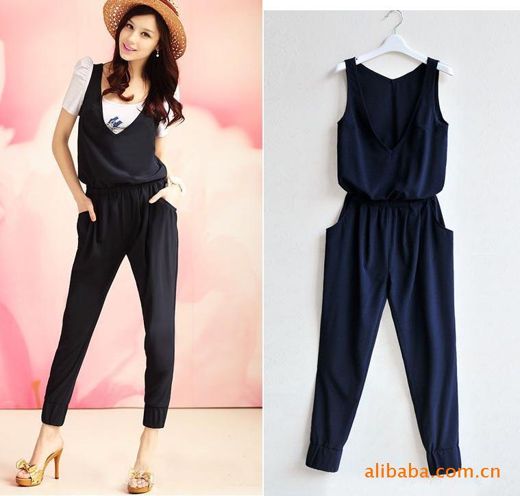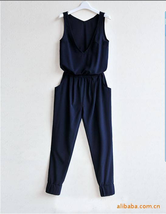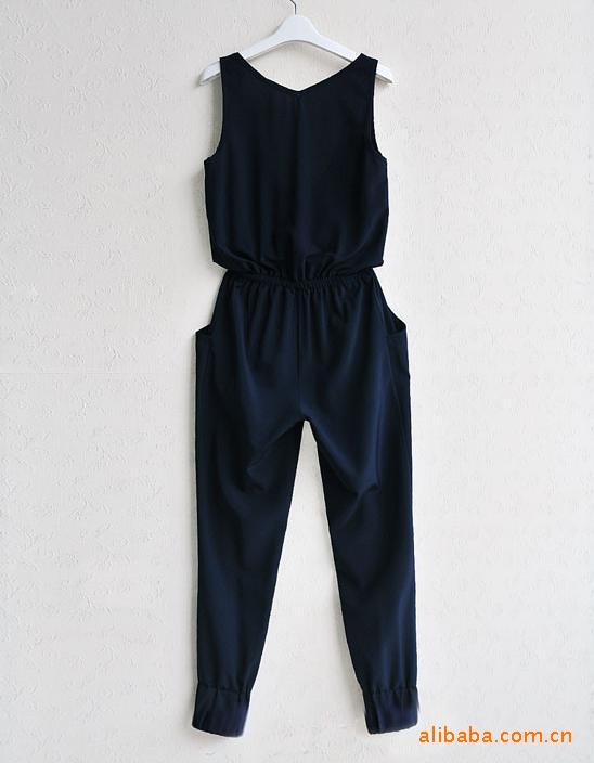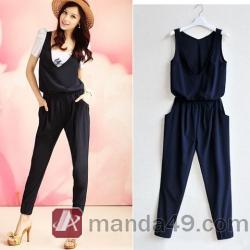 Amanda49 Stylish Deep V-Neckline Elastic Cotton Sleeveless Jumpsuit |