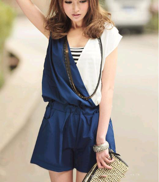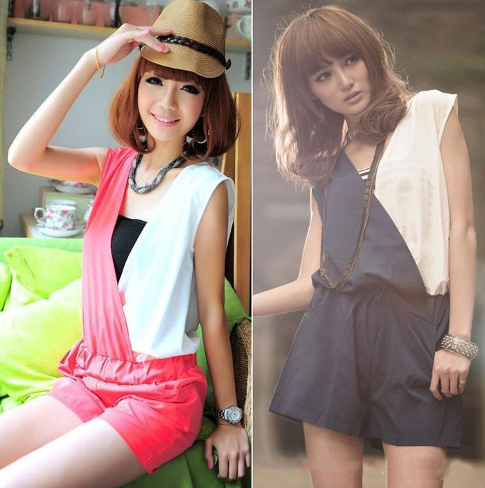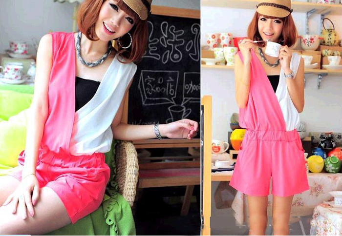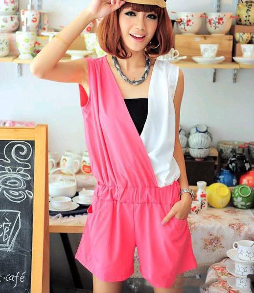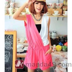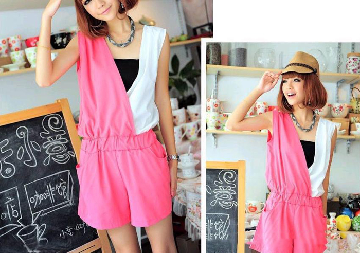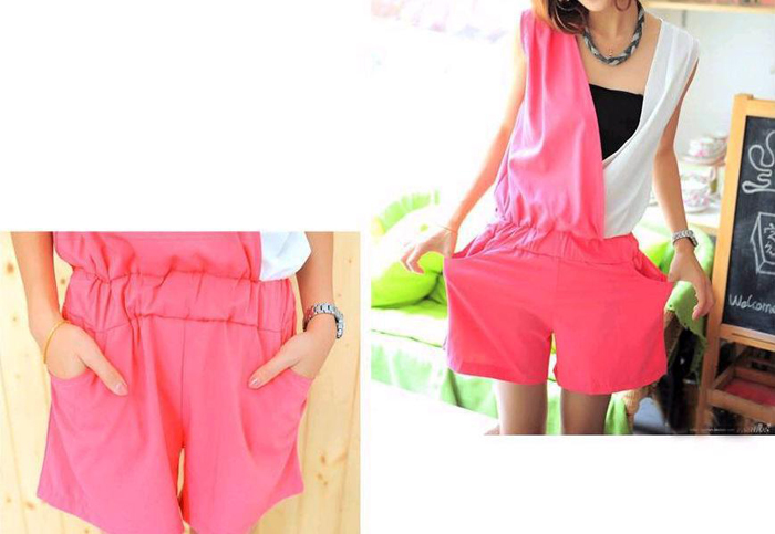 Amanda49 Stylish Deep V-Neckline Elastic Waist Design Sleeveless Jumpsuit |