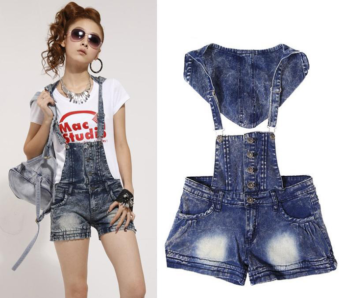 Amanda49 Stylish Elastic Jeans Short Overalls For Women |