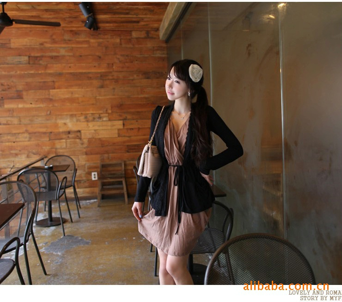 Amanda49 Stylish Korea Style Ruffled Hem Lace Back Design Long Sleeve Coat |