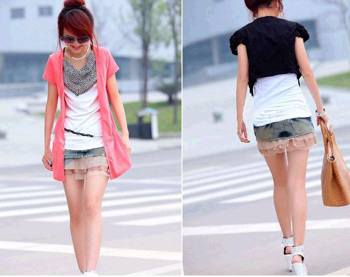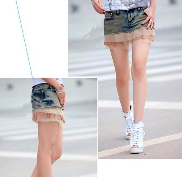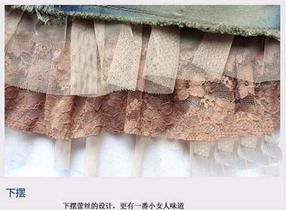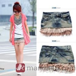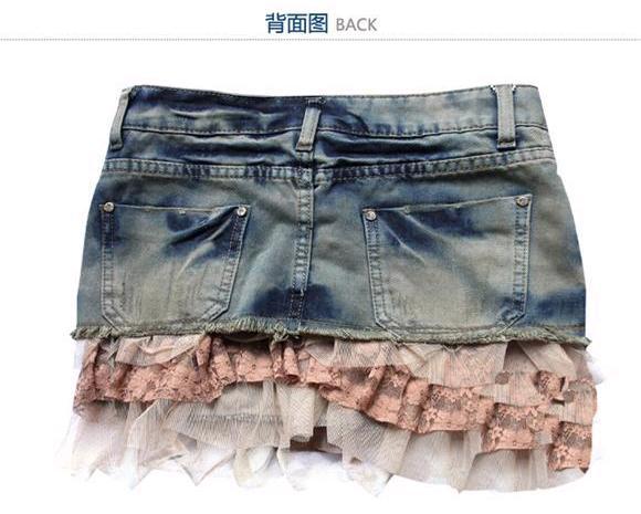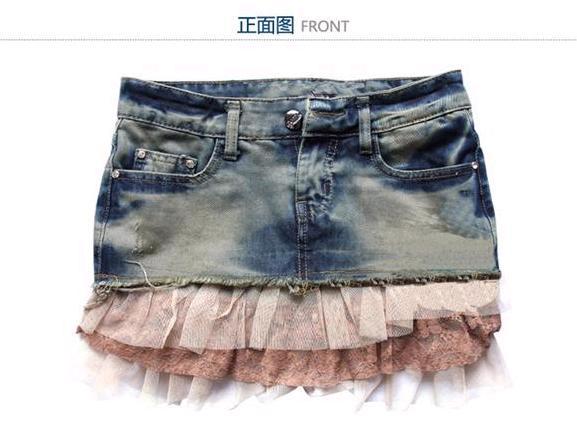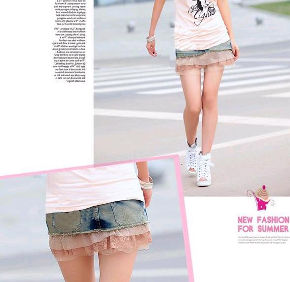 Amanda49 Stylish Layered Ruffles Lace Hem Design Fitness Jean skirts |