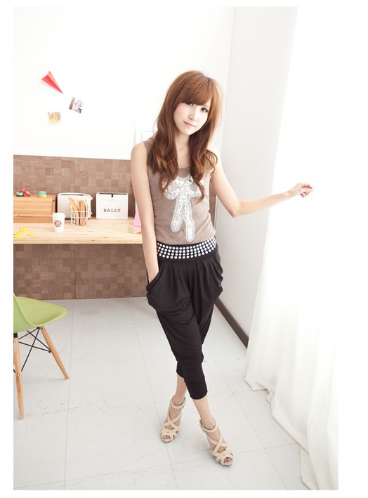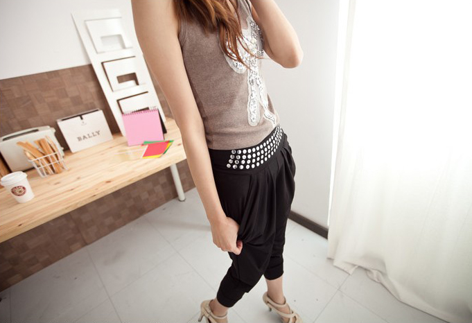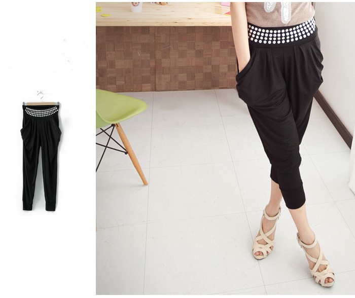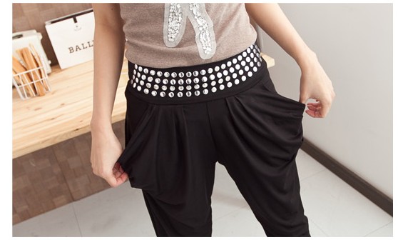 Amanda49 Stylish Paillette Embellish Waist Relaxed Fit Harem Pants |