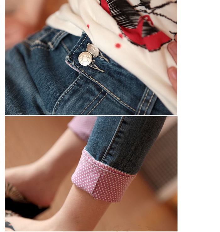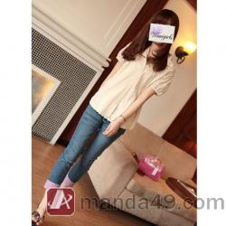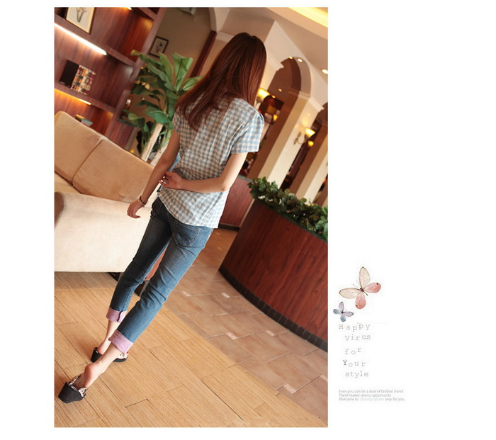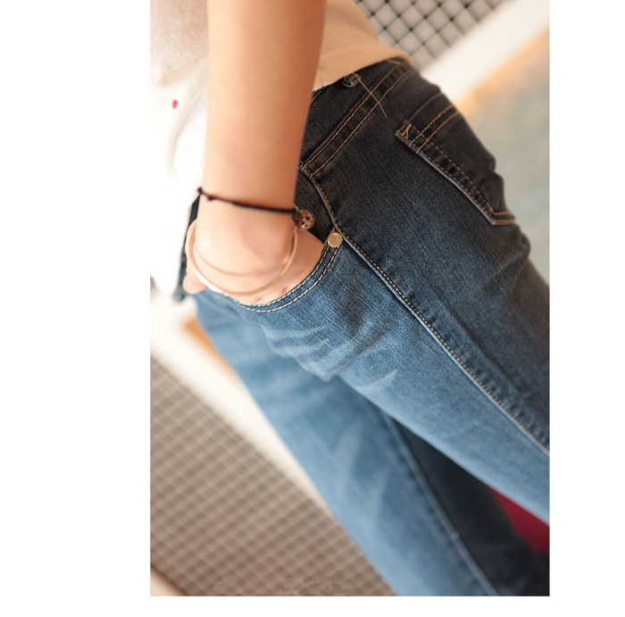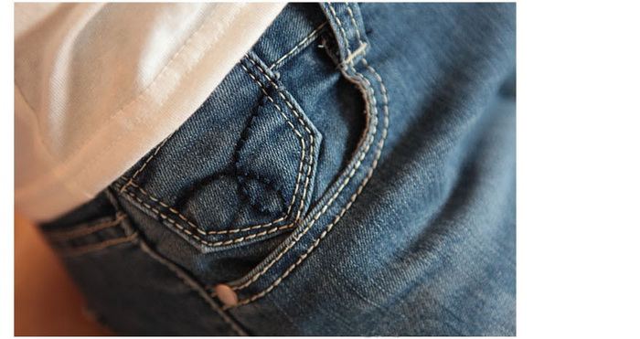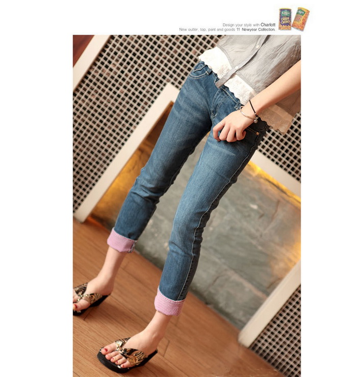 Amanda49 Stylish Rolled Hem Design Water Wash Blue Pencil Jeans |