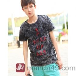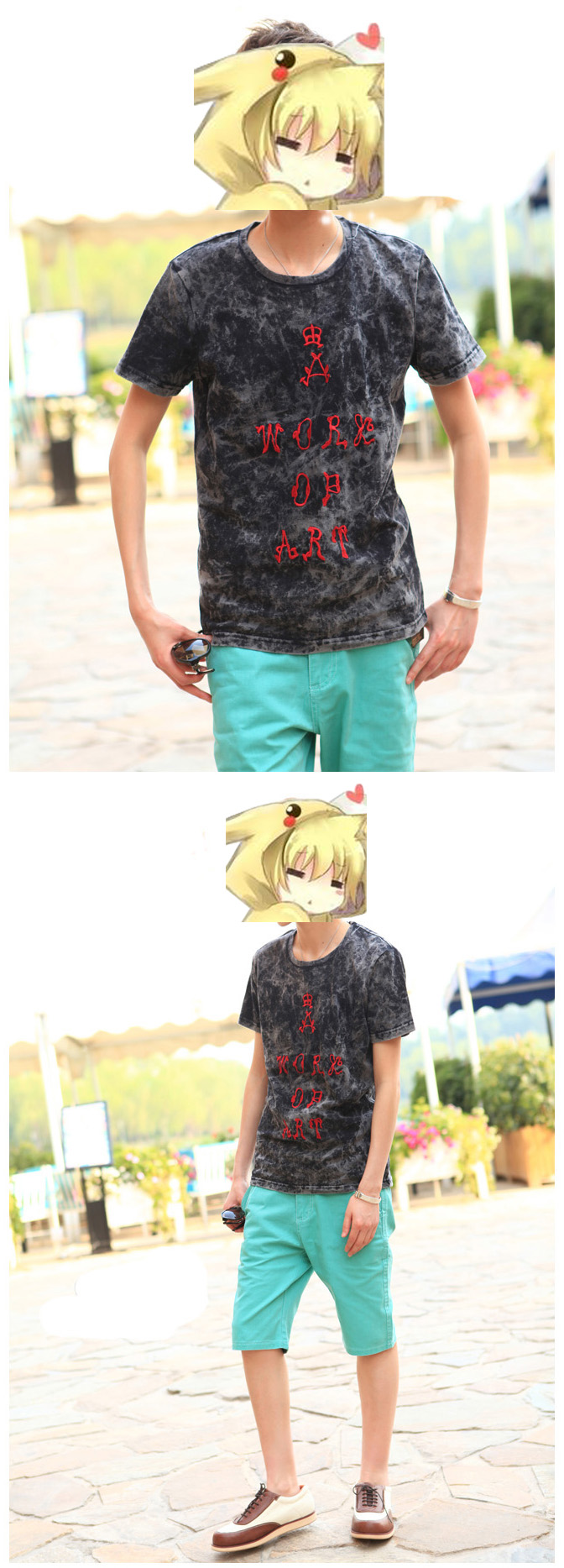 Amanda49 Stylish Round Neckline Scattered Letter Printed Black Sleeves Cotton T-Shirt For Men |