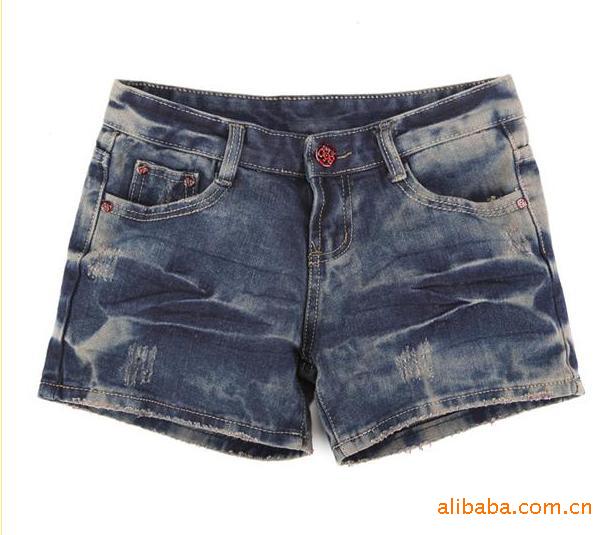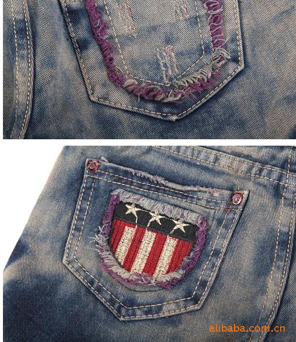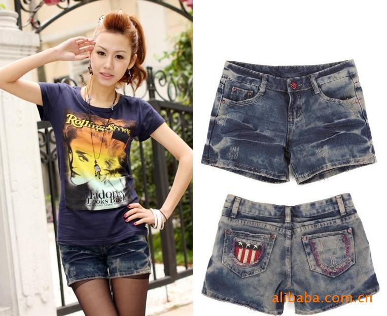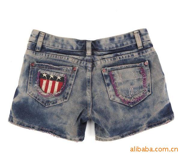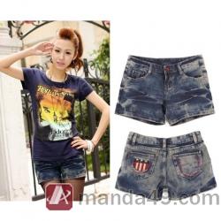 Amanda49 Stylish USA Flag Pocket Design Short Wearout Jeans |