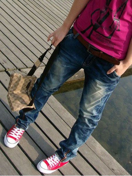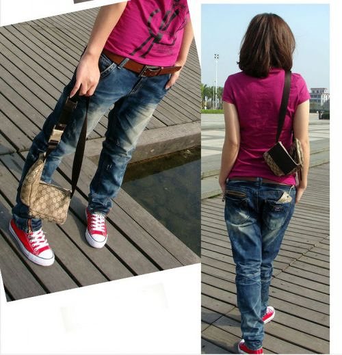 Amanda49 Stylish Zipper Embellished Small Leg Opening Baggy Jeans |