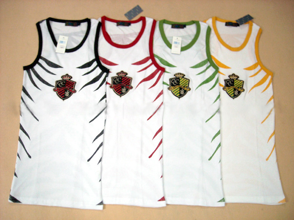 Amanda49 Summer Fashion Hip Hop Style Round Neckline Stripes Painting Badge Embellished Sleeveless Cotton Vest |