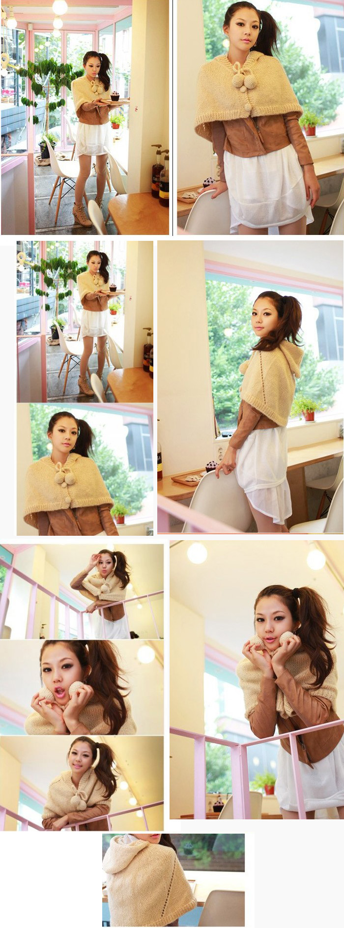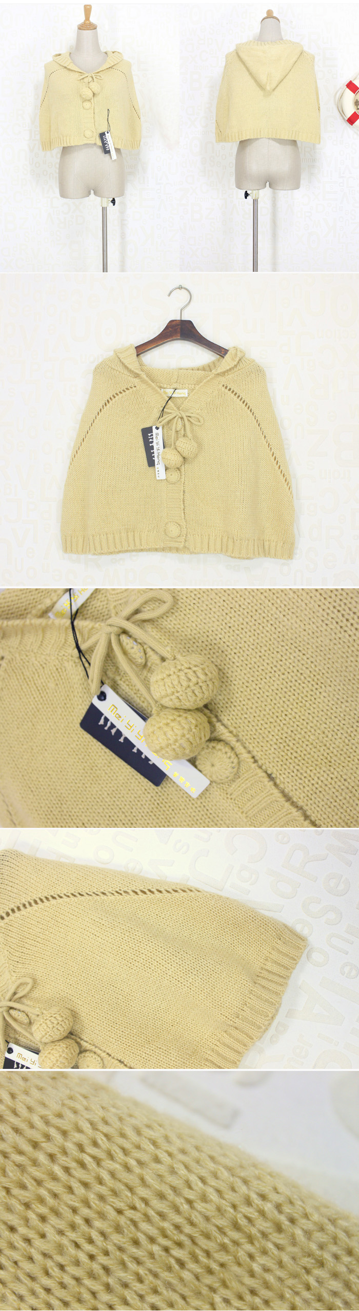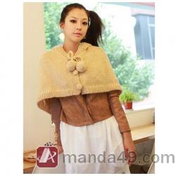 Amanda49 Super Cute and Charming Lapel Apricot Wool Ball Pendant Single-Breasted Acrylic Cloak For Women |