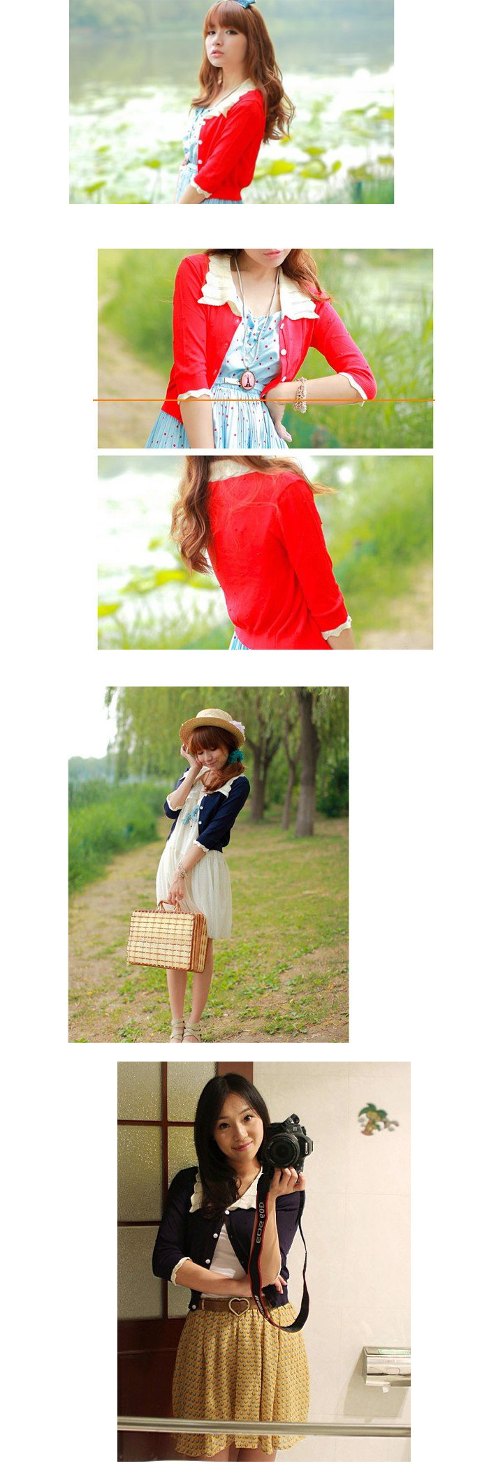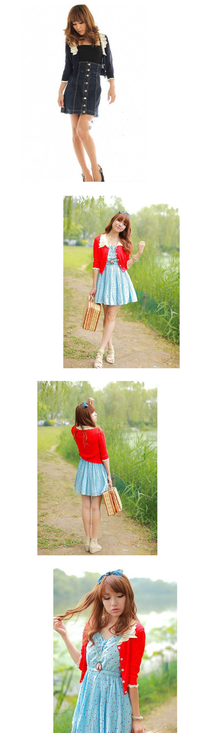 Amanda49 Super Cute Special Lace Lapel Single-Breasted Long Sleeves Mercerized Cotton Coat For Women |