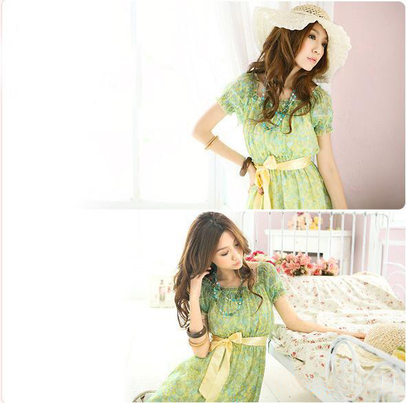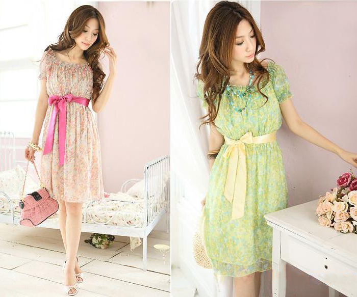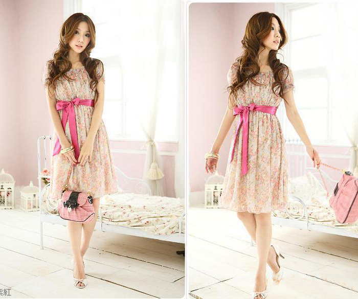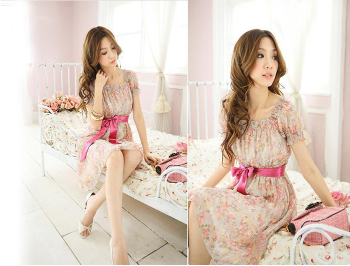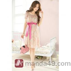 Amanda49 Sweet Bowknot Flowers Chiffon Sleeves Dress--Women's Dresses |