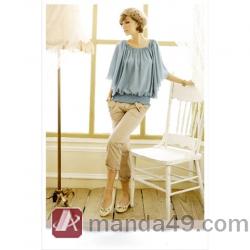 Amanda49 Sweet Elastic Collar Design Batwing Sleeves Mercerized Cotton Blouse Blue |