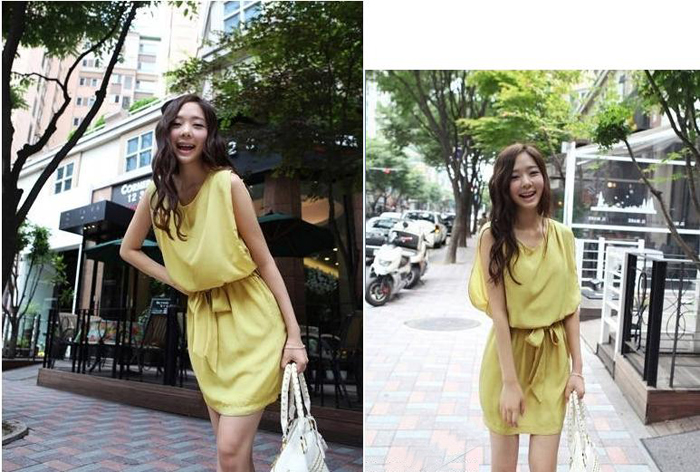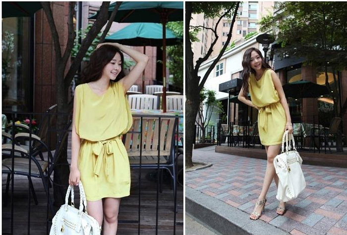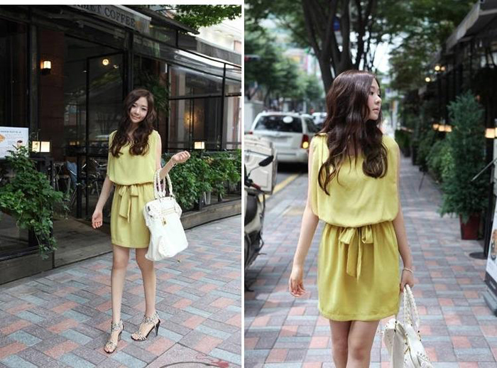 Amanda49 Sweet Round Neckline Sleeveless Silk Dress For Women |