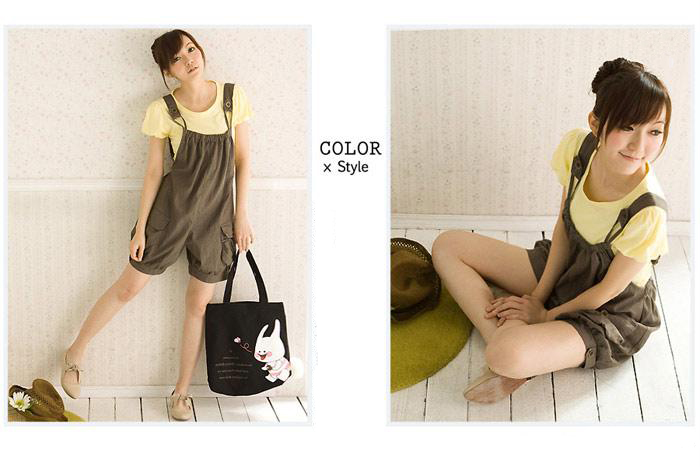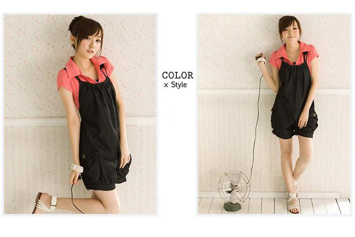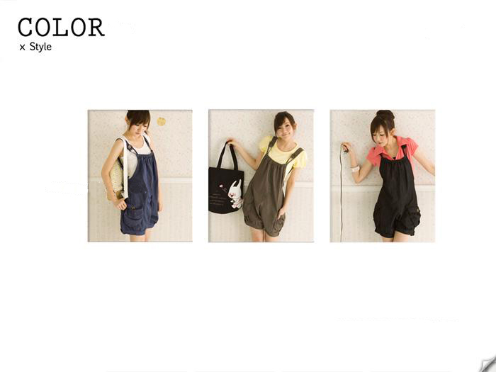 Amanda49 Sweety Frills Double-Pocket Puff Braces Overalls For Women |
