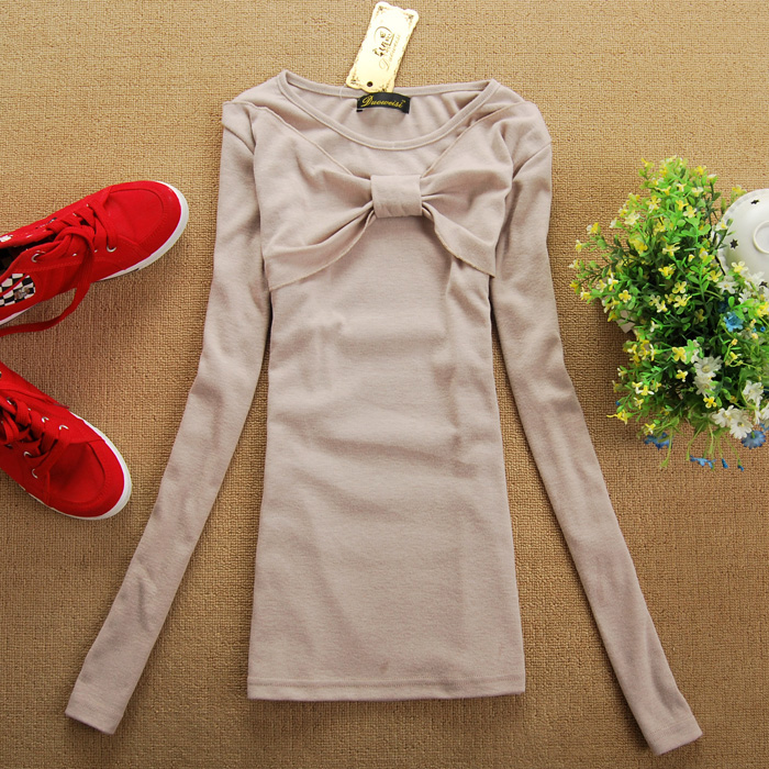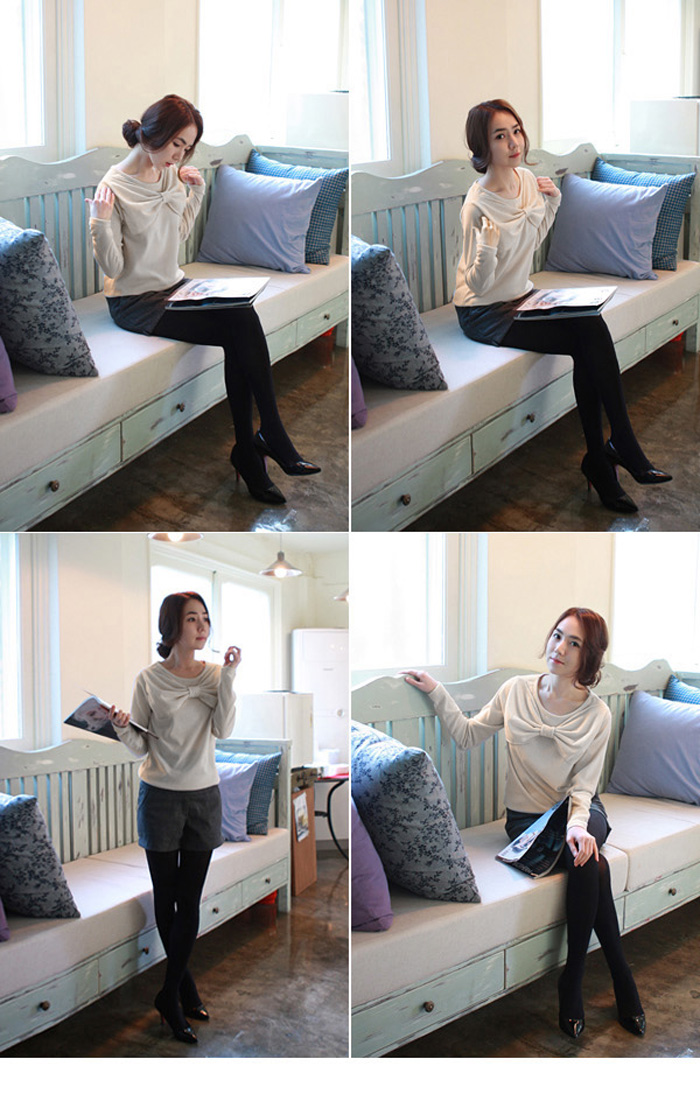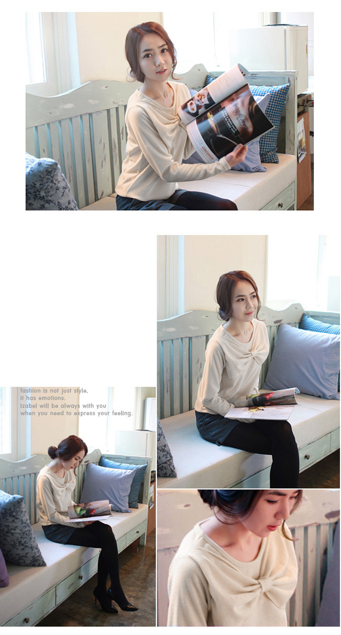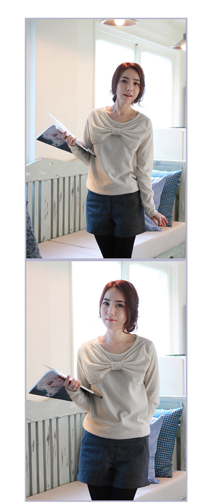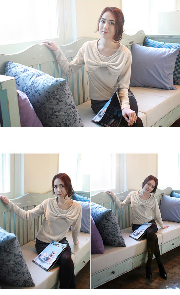Amanda49 Sweety Round Bowknot Embellished Collar Apricot Sleeves Knitting Blouse For Women |