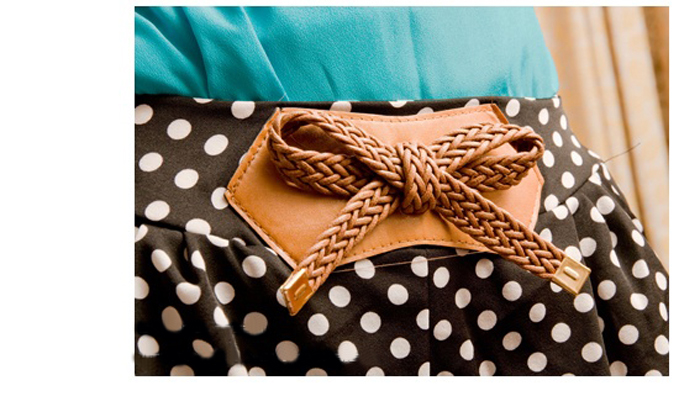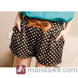 Amanda49 The Latest Style Polka Dot Patterns Bow-Tie Embellished High Elastic Waist Design Pants |