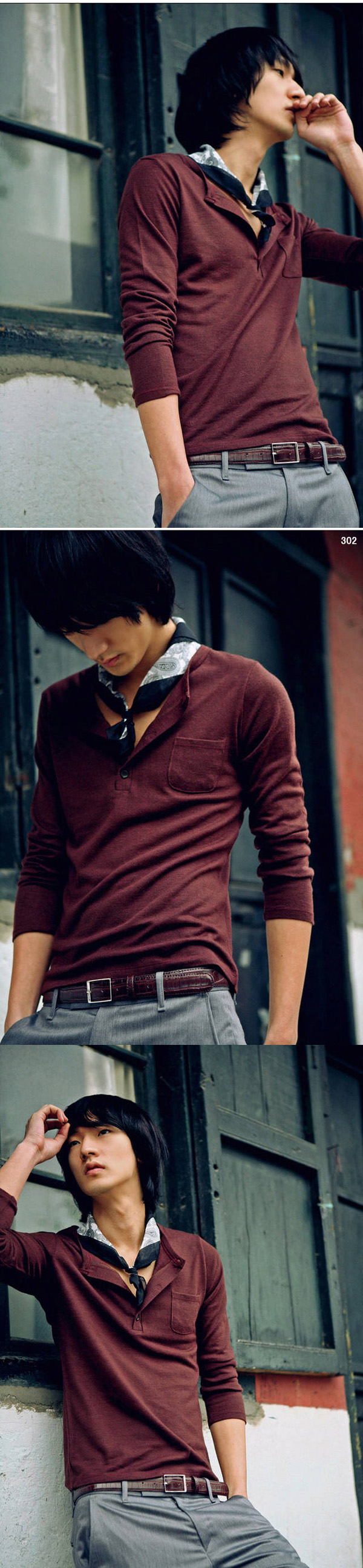 Amanda49 The Newest Corean Fashion Style Button Decorated Long Sleeve Knitting T-shirt For Man |