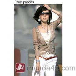 Amanda49 Two Pieces Polyester Cotton Long Sleeveles Blouse--Women's Blouses |