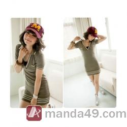 Amanda49 V Neck Double Chest Pocket Design Army Green Short Sleeves Long Blouse--Women's Blouses |