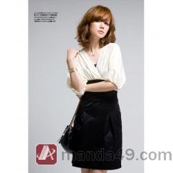 Amanda49 V Neckline OL High Waist Puff Half Sleeves Dress--Women's Dresses |