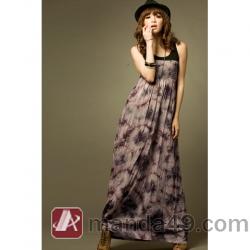 Amanda49 Vintage Splicing Elastic Waist Cotton Sleeveless Long Dress--Women's Dresses |