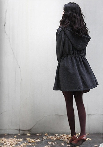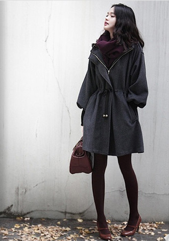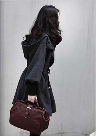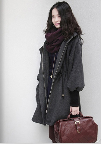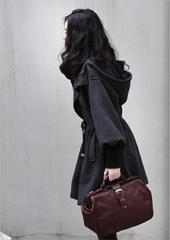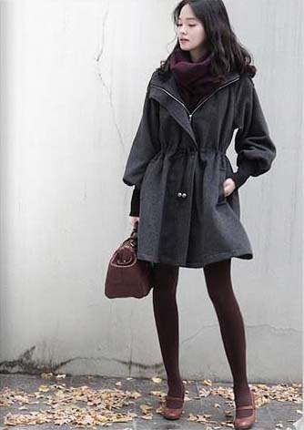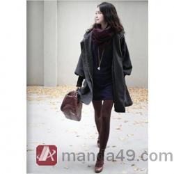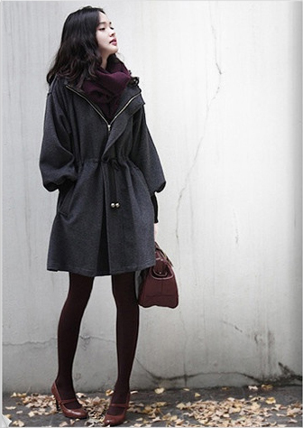 Amanda49 Warm-Keeping Layered Lapel Lace-Up Zipper Puff Long Sleeves Black Fleece Coat For Women |