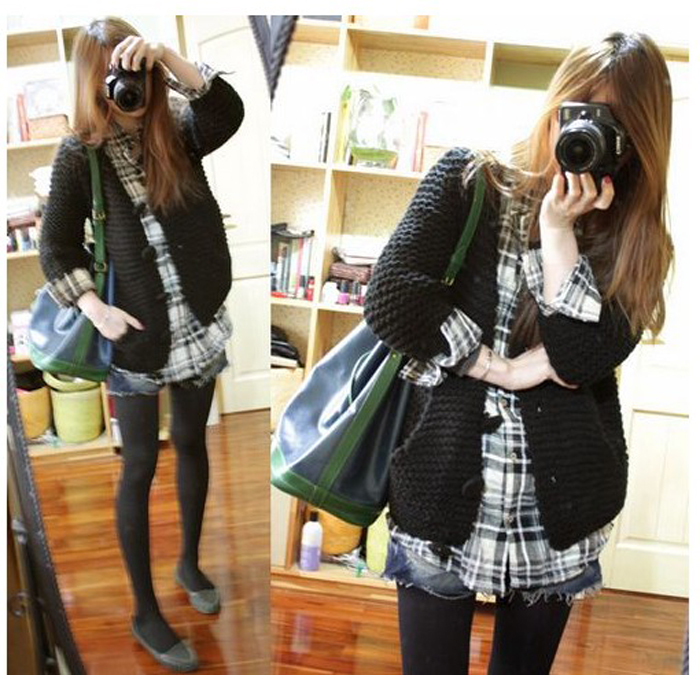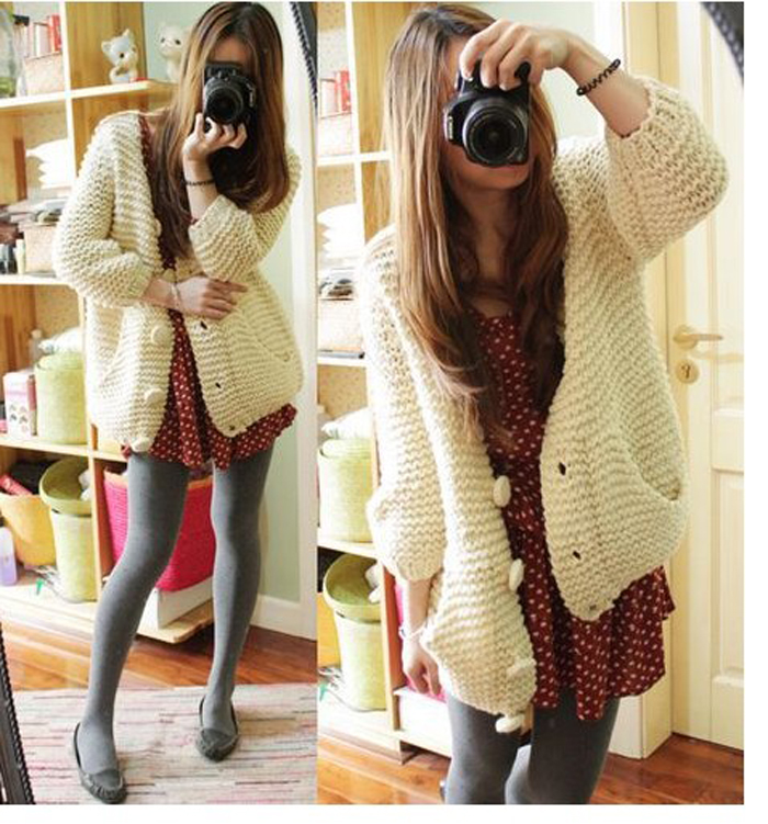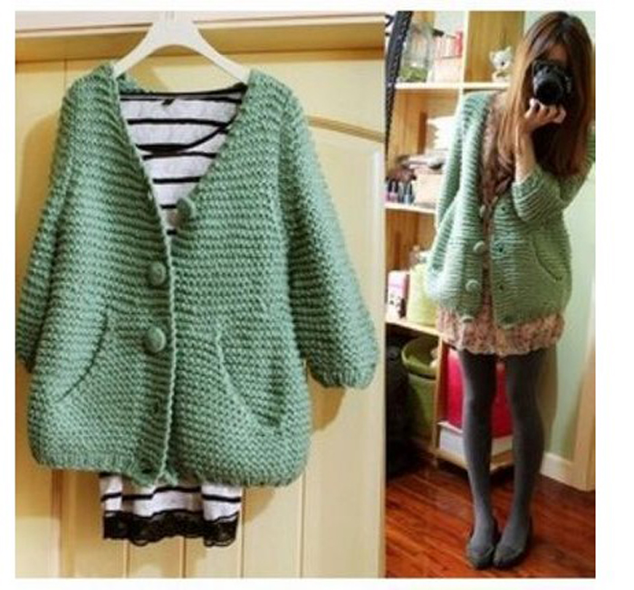 Amanda49 Warmly and Cute V-Neck Double-Pocket Long Sleeves Sweater For Women |