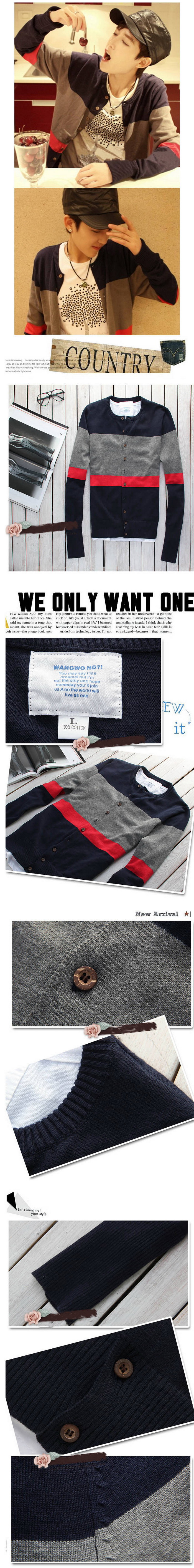 Amanda49 Warmly and Slim Round Neckline Stripes Cotton Blouse For Men |