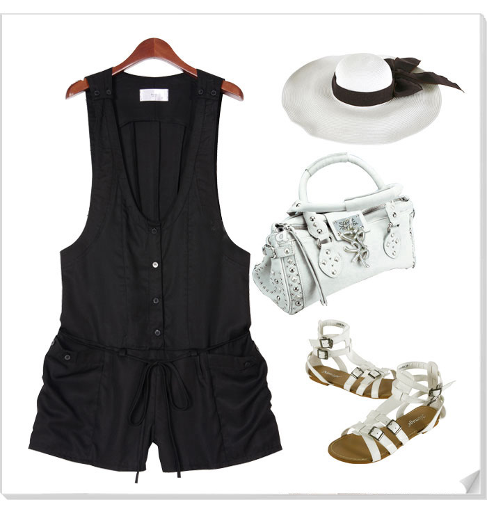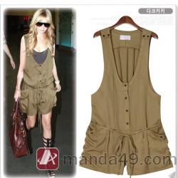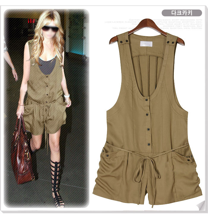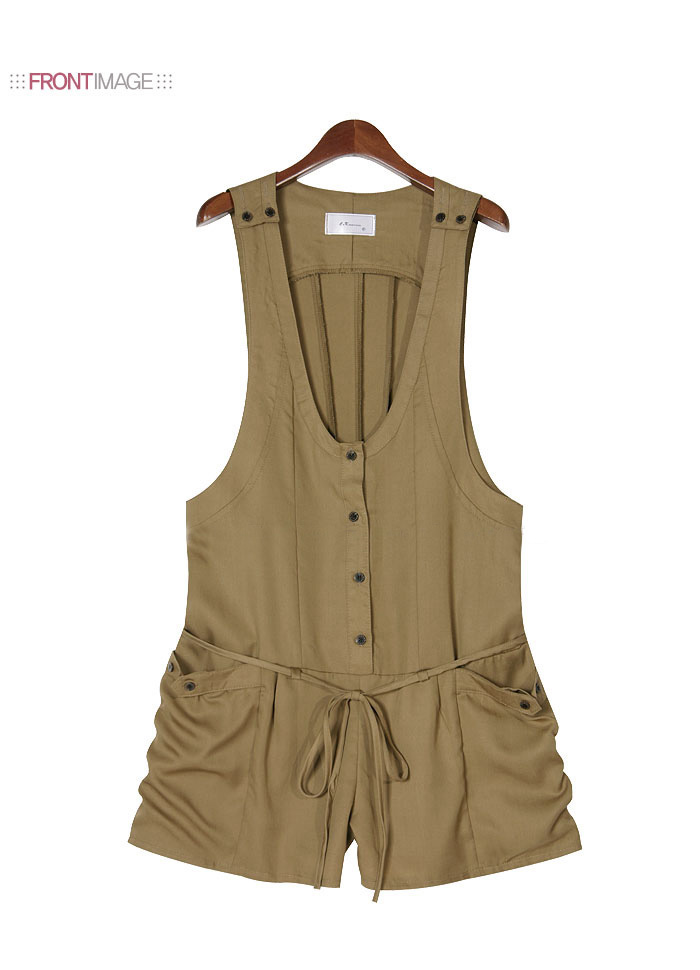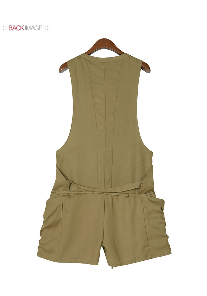 Amanda49 Weatern Fashion Casual Style Deep V-Neckline Sleeveless Short Jumpsuit |