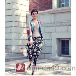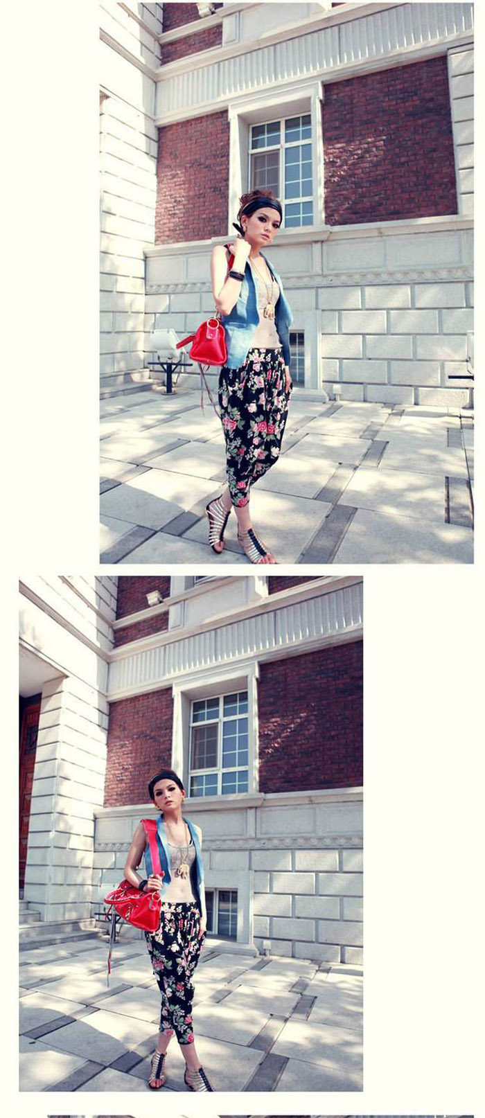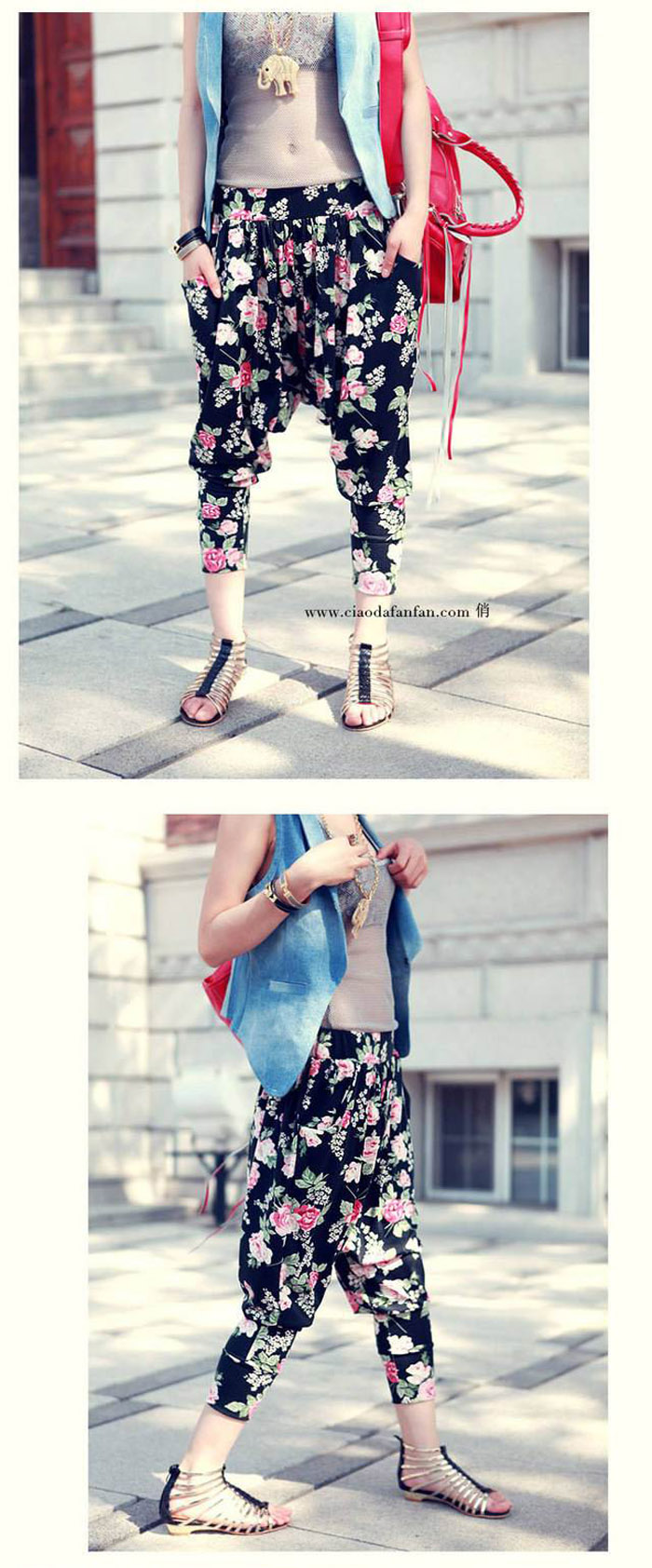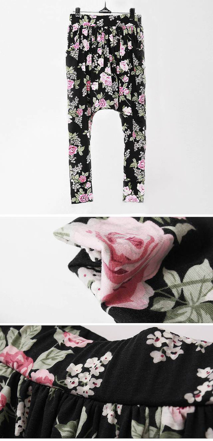 Amanda49 Western Fashion Floral Patterns Dark Green Elastic Cotton Harem Pants |