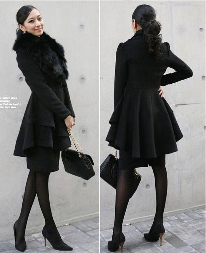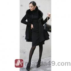 Amanda49 Western Fashion Luxurious and Detachable Fur Collar Large Hem Long Sleeve Coat |