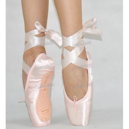 Ankle Straps Satin Light Pink Hard Soles Soft Ballet Shoes |