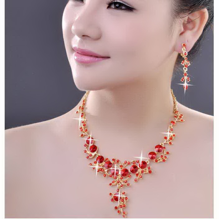 Beautiful Women's Wedding Red Crystal Alloy Jewelry Set |