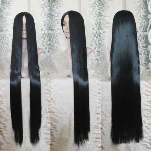 1 X100CM black Extra Long Straight Human Made Full Wig Hair