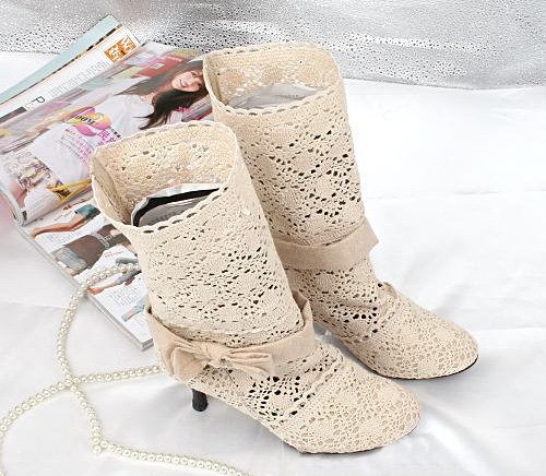 Black Lace & Knitted Cotton & PVC Snow Boots |