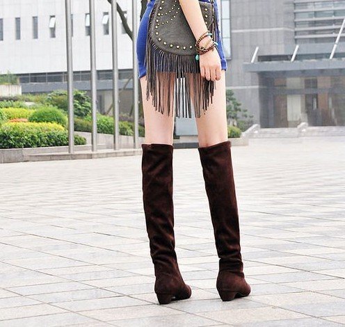 Brown Flat Bottom PVC & Cotton Women's Knee High Boots |
