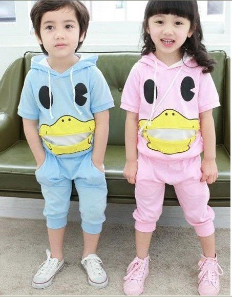 Children's Han Edition Lovely Ducks Short-sleeved Cotton Suit |