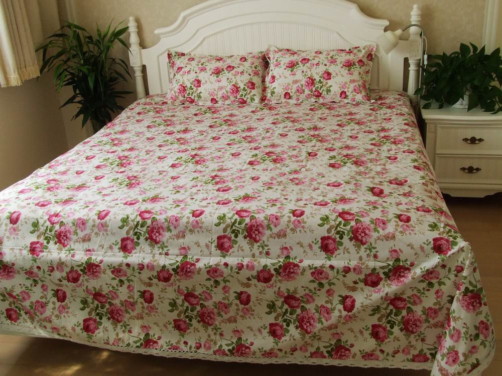 Chinese Traditional Cotton Soft Handmade Red Flowers Print Bedding Set |