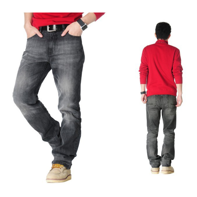 Classic Design Men's Plicated Straight Leg Body-shaped Dark Gray Jeans |