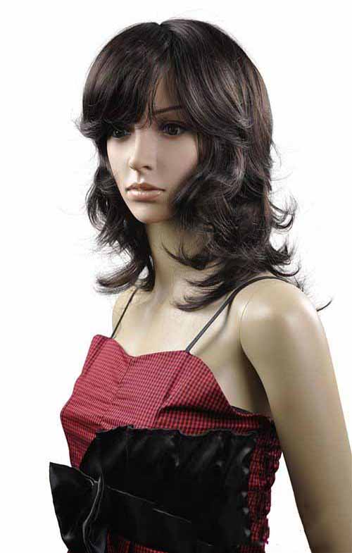 Dark Brown Curl Short Scroll to Send Inclined Bang Synthetic Wigs |