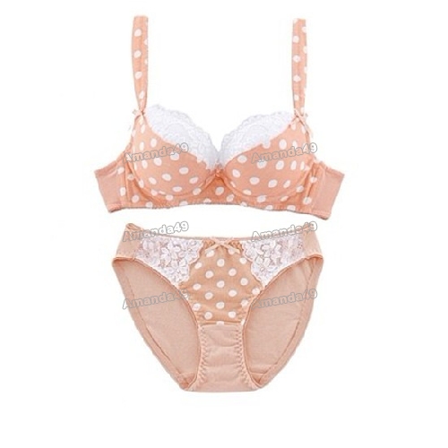 Dot Lace Steel Ring Thin Mold Cup Anti-slip Bras Set |
