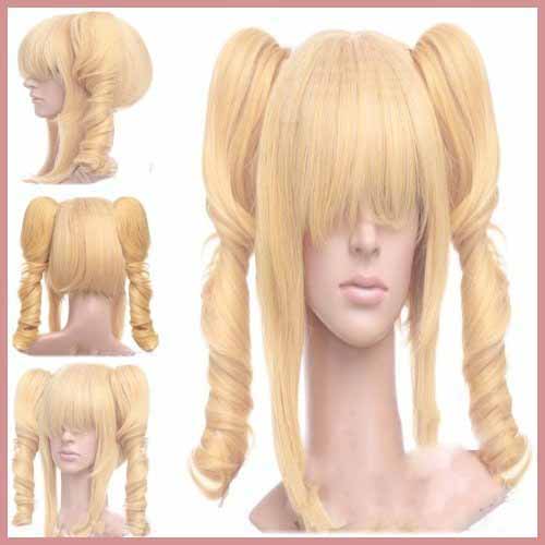 Fashion full head Anime Cosplay Wig long blonde synthetic hair wigs with2 Clip On Ponytail