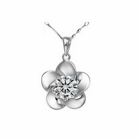 Female Middle Flower Shape Carved Silver Necklace Pendant |