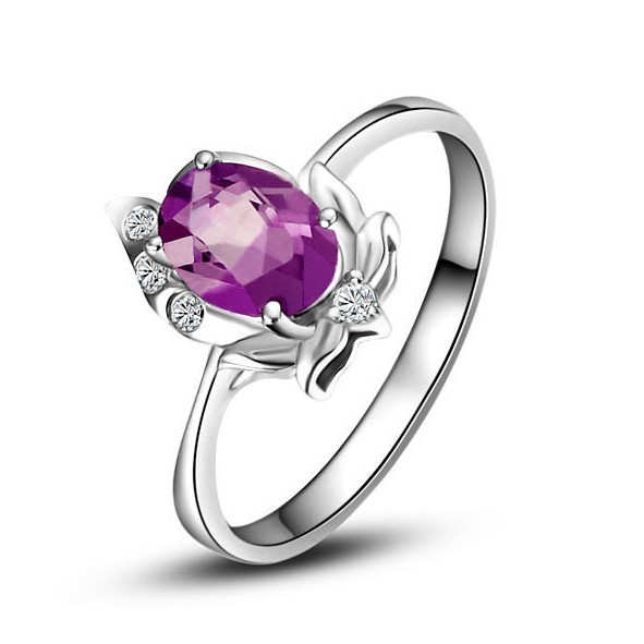 Female Never Fade with Big Irregular Shape Purple Diamond Silver Jewelry Ring |