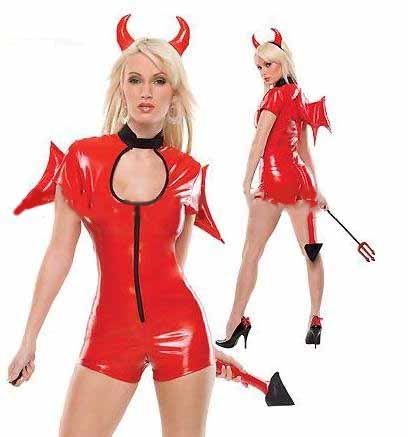Female Red Demons Polyester Halloween Skin Tight Costume |