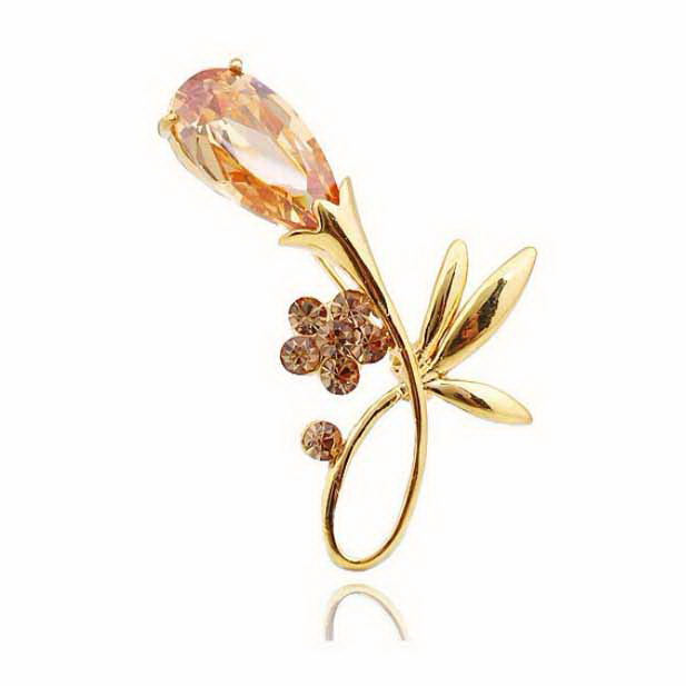 Gilded Zircon Austrian Crystal Flower Shape Brooch |