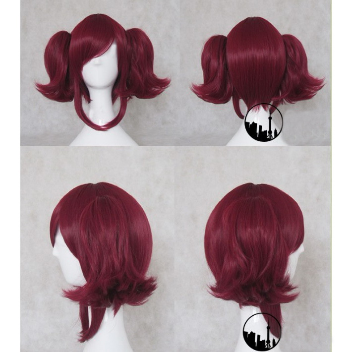 High-temperature Fiber Reusable Curly Double Pony Tails Cosplay Red Wig |