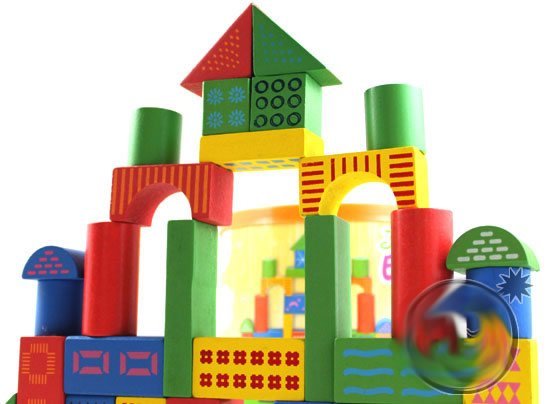House Shape Wooden Green & Red & Blue Building Block |